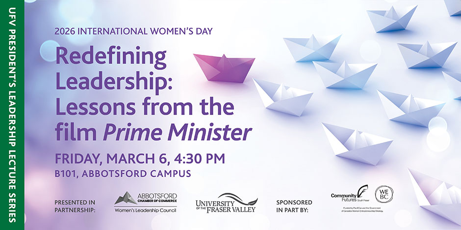 This program is presented as part of the President's Leadership Lecture Series, in partnership with the Abbotsford Chamber of Commerce, bringing together campus and community to celebrate leadership and equity.