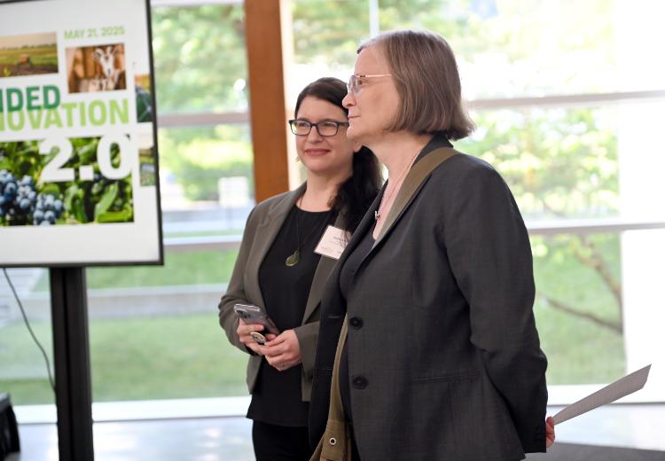 Dr. Stefania Pizzirani, Associate Director of the Food and Agriculture Institute, and Dr. Lenore Newman, Director of the Food and Agriculture Institute at University of Fraser Valley’s Grounded Innovation 2.0, May 2025.